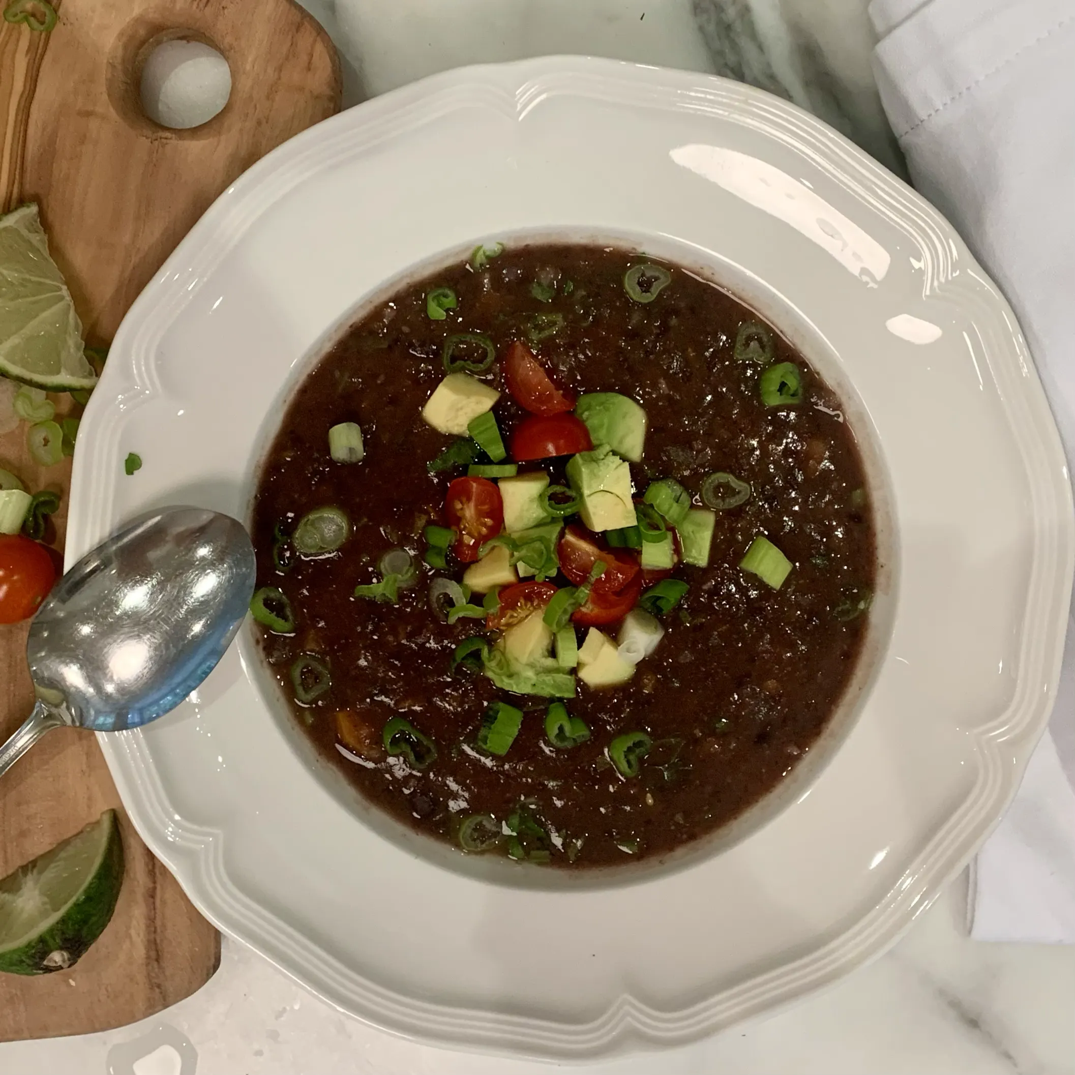 This soup is by far one of our favourites! I often make this soup when we need a bit of comfort in our house. By using canned black beans this soup comes together quickly making this the perfect weeknight meal. I like to serve this with a large green salad but it also pairs well with a quesadilla.