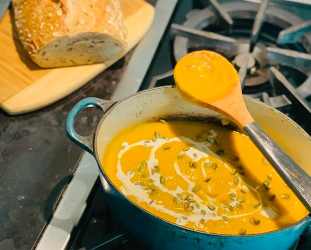 Ladle the soup into bowls and garnish with roasted pumpkin seeds and cream or your favourite milk alternative (I used NutPods). Enjoy!